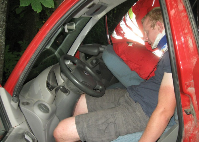 Die großräumig angelegte Umleitung für die Baustelle auf der Stadteinfahrt Bad Hall sorgte auf der Bad Haller Straße für ein sehr geringes Verkehrsaufkommen. Diese Situation nutzte die Feuerwehr Waldneukirchen, um ein realistisches Unfallsszenario auf einer größeren Straße ihres Pflichtbereiches zu üben. Übungsannahme war ein von der Fahrbahn abgekommener PKW mit eingeklemmter Person sowie ein von dem PKW gerammter Fahrradfahrer.