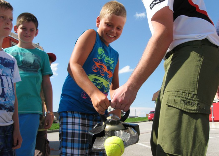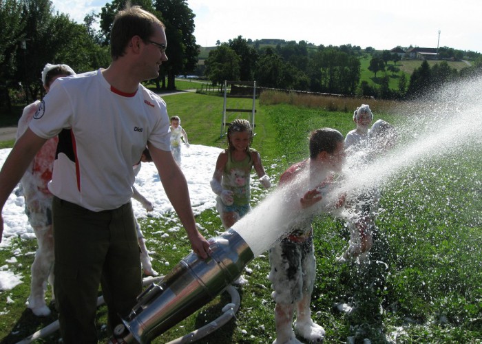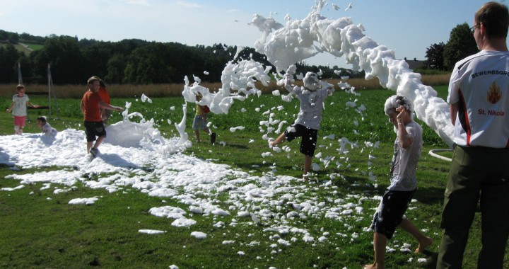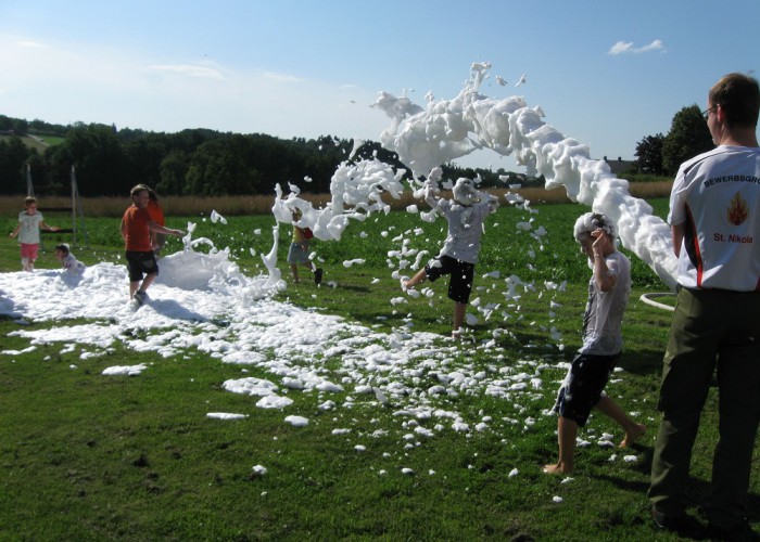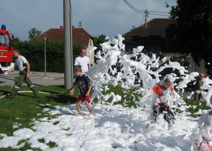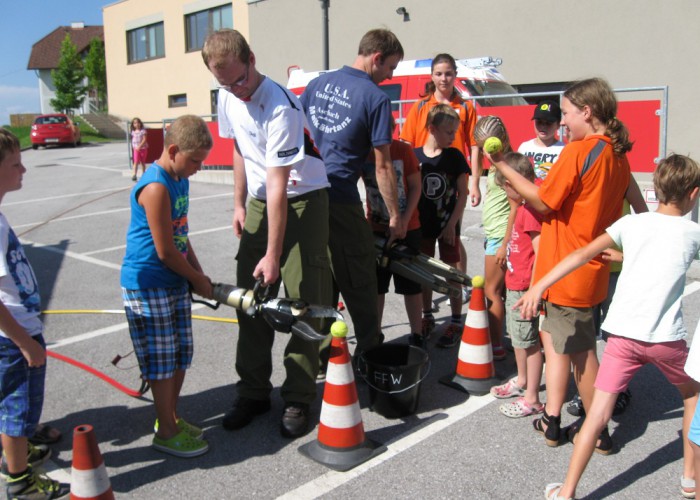 Am ersten Augustwochenende veranstalteten die drei Feuerwehren von Waldneukirchen die gemeinsame Ferienscheckaktion. Die 15 Kinder durften erst abwechselnd in der Hörmühle auf der Bewerbsbahn und in Steinersdorf im Feuerwehrhaus beim Pumpen, Spritzen, Schlauchleitung legen und auf der Hindernisbahn richtig austoben. Die ersten Kandidaten wurden hier schon reichlich nass. Weiter ging es im Feuerwehrhaus Waldneukirchen mit einer Geschicklichkeitsübung, bei der mit Spreizer und Schere Tennisbälle von einem Verkehrskegel auf den anderen gesetzt werden mussten. Einige Tennisbälle schafften es nicht, ohne Schäden davonzukommen und wurden später von den Kindern mit netten PacMan-Gesichtern verziert. Danach gab es für alle eine kleine Stärkung bevor die Veranstaltung mit der heiß ersehnten, traditionellen Schaumparty ihren Abschluss fand.