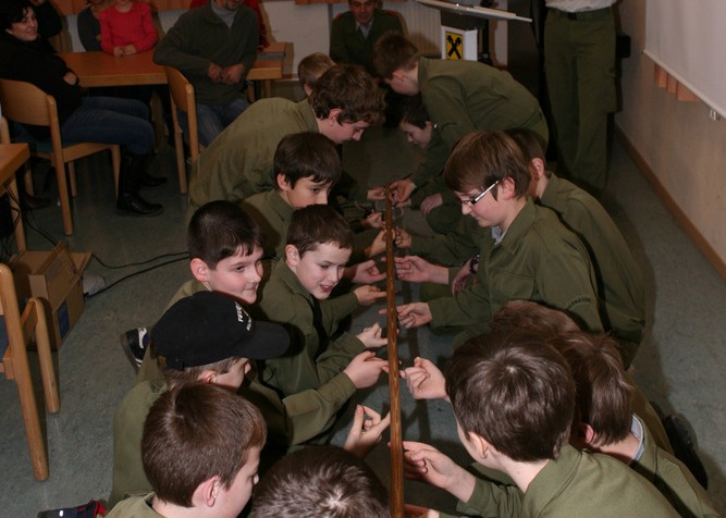 Vorgetragen wurden die errungenen Leistungsabzeichen und Beförderungen der Jugendlichen, die Erfolge bei den Bewerben und unternommene Freizeitaktivitäten wie der Aquapulco-Besuch oder das Feuerwehrjugendlager. Richtig spannend wurde es, als die Eltern zwischendurch beim „Zauberstab“ (siehe Fotos) gegen die Jugendlichen antreten mussten. Die Kinder wurden Zweiter, die Eltern mussten sich mit dem vorletzten Platz zufrieden geben. 😉