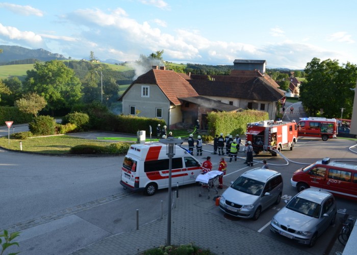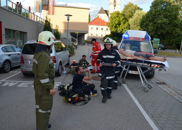 Bevor das Gebäude gegenüber unseres Feuerwehrhauses abgerissen wird, durften wir noch eine heiße Übung darin veranstalten, an der die drei Feuerwehren des Pflichtbereichs und das Rote Kreuz Bad Hall teilnahmen.