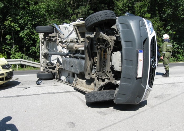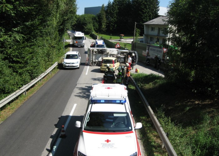 Ein abbiegender LKW wurde am Montagnachmittag auf der Grünburgerstraße von einem nachkommenden Fahrzeug gerammt und dadurch zum Umstürzen gebracht.