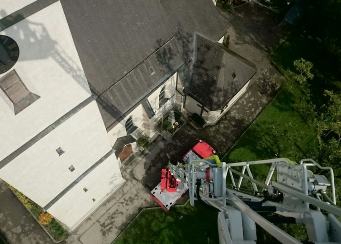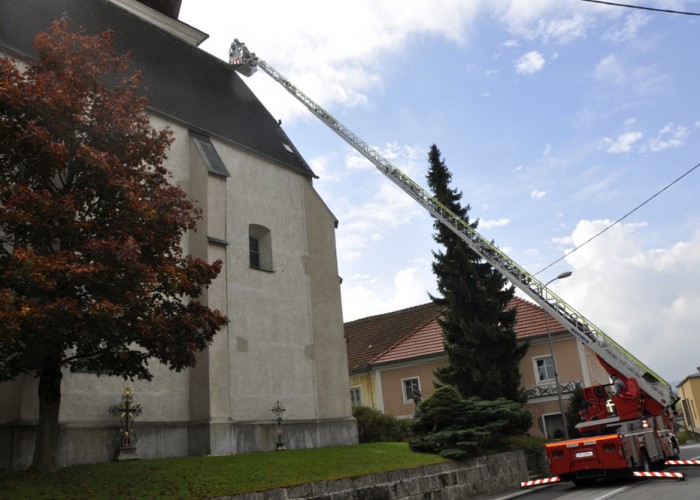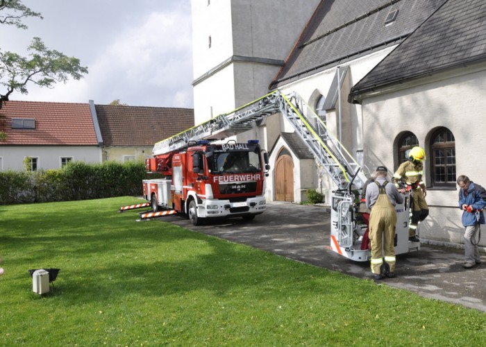 Auf ihrem Heimweg führte die Leiter Bad Hall noch eine Stellprobe bei der Kirche durch, bei der Pfarrer Hofmann seinen Arbeitsplatz einmal aus der Perspektive seines Chefs betrachten durfte.