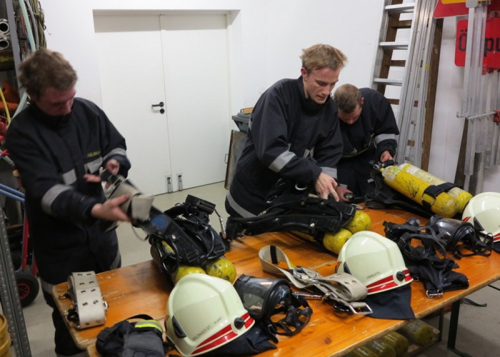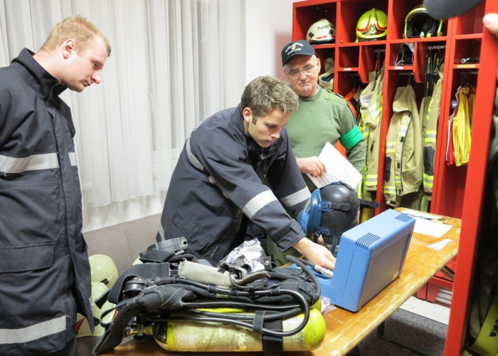 Nachdem unsere Kameraden auch diese Aufgabe gemeistert hatten, stand nur noch die richtige Versorgung der Gerätschaften samt Flaschenwechsel und Prüfung des Atemschutzgerätes zwischen ihnen und dem erfolgreichen Absolvieren des Abzeichens.