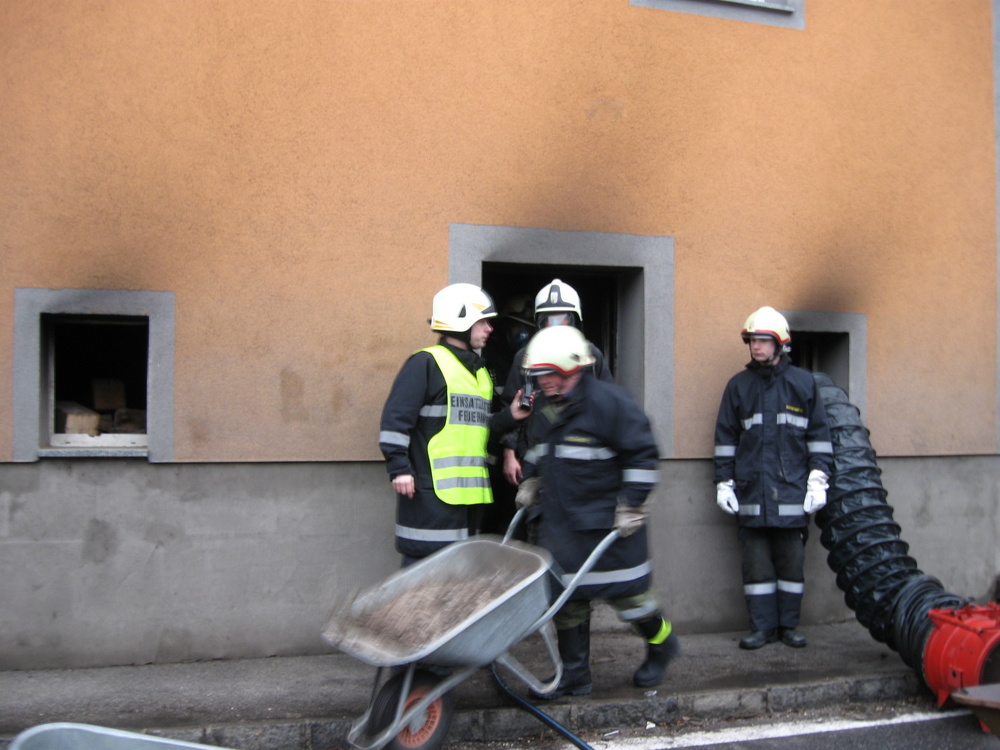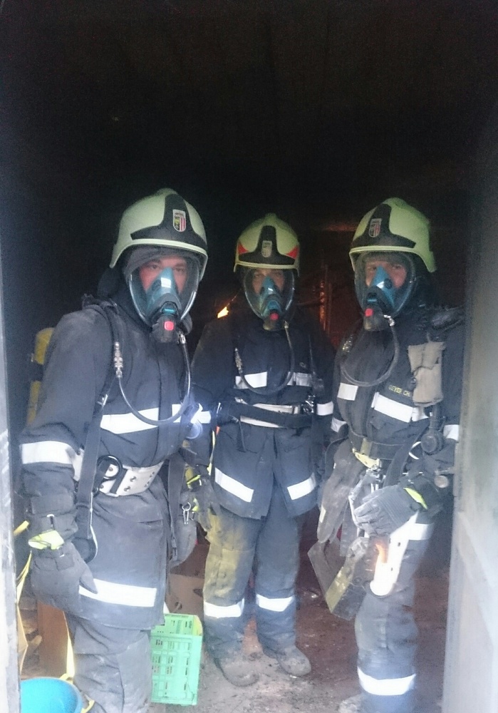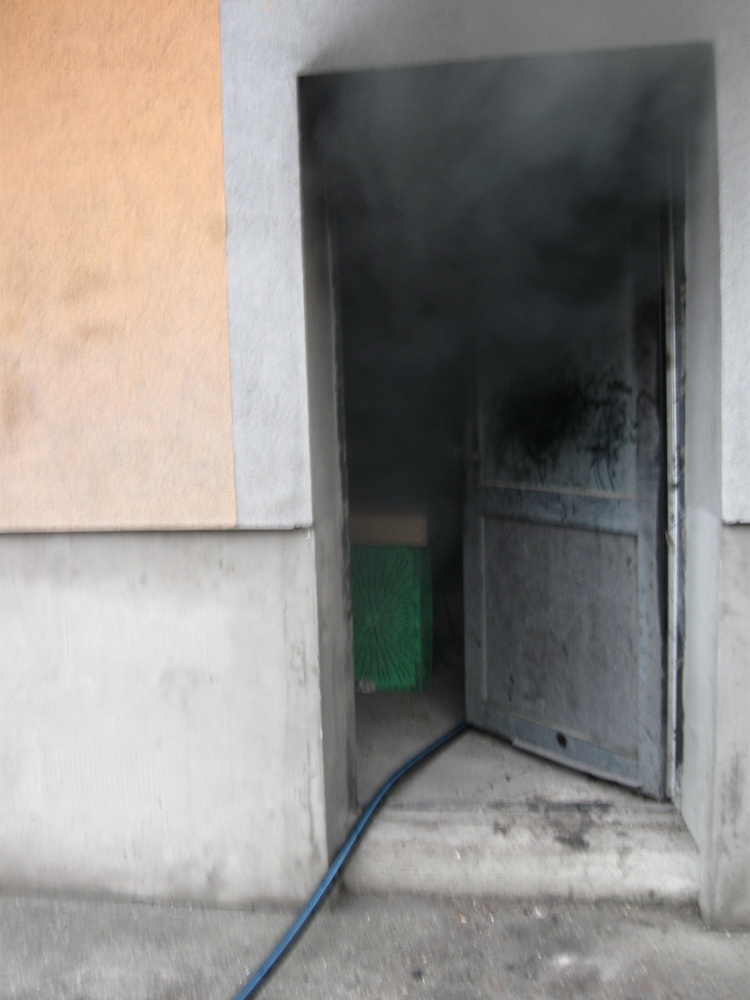 Bei unserem Eintreffen drang dichter Rauch aus der offenen Eingangstür. Der Brand entstand aus unbekannten Gründen neben der Heizanlage und hatte bereits auf den Boiler übergegriffen. Durch das rechtzeitige Eingreifen der Einsatzkräfte konnte eine Ausbreitung auf das Holzlager im Nebenraum verhindert werden. Nach Brand aus wurde der Heizraum ausgeräumt und mit der Wärmebildkamera kontrolliert.