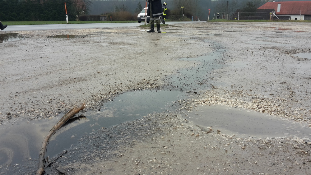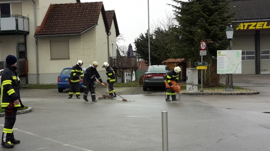 Nach unserer 122. Jahreshauptversammlung war noch kein Tag vergangen, wurden wir heute Vormittag wieder zum Entfernen einer Ölspur gerufen. Die Fahrerin eines PKW schlug sich beim LKW-Parkplatz gegenüber der Firma Zemsauer die Ölwanne auf und zog eine 3,6 Kilometer lange Ölspur durch den Ort und von dort Richtung Adlwang.
