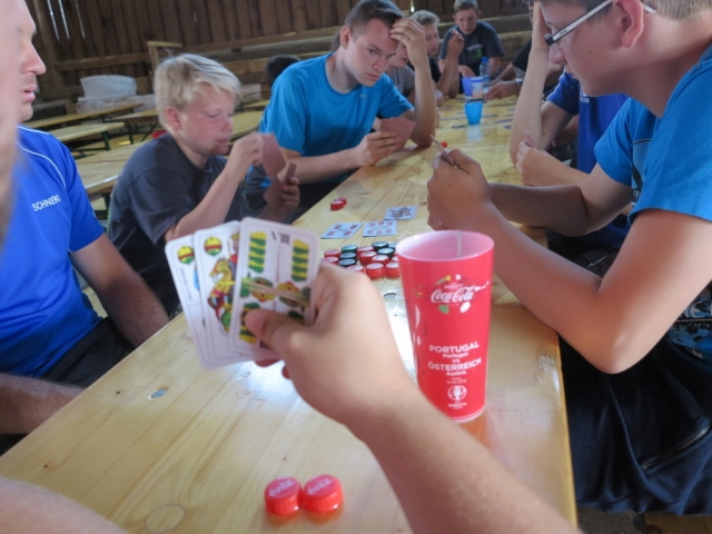 Weiter ging es mit dem Wissensteil der Lagerolympiade. In verschiedenen Stationen kämpften sich die Teilnehmer durch unmögliche Scherzfragen, knifflige Buchstabenrätsel oder Farbentests.