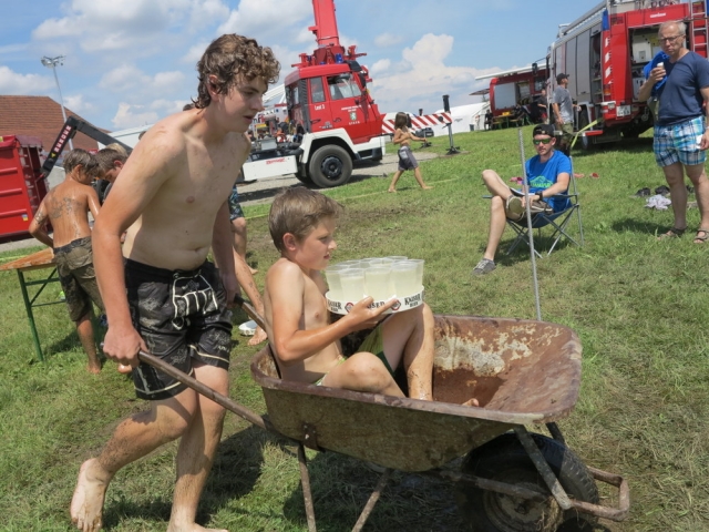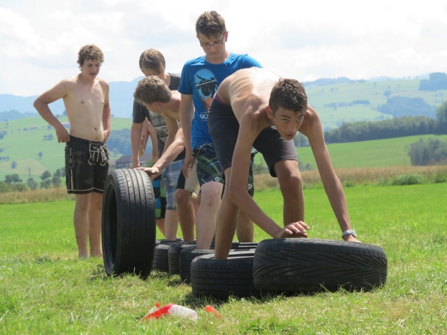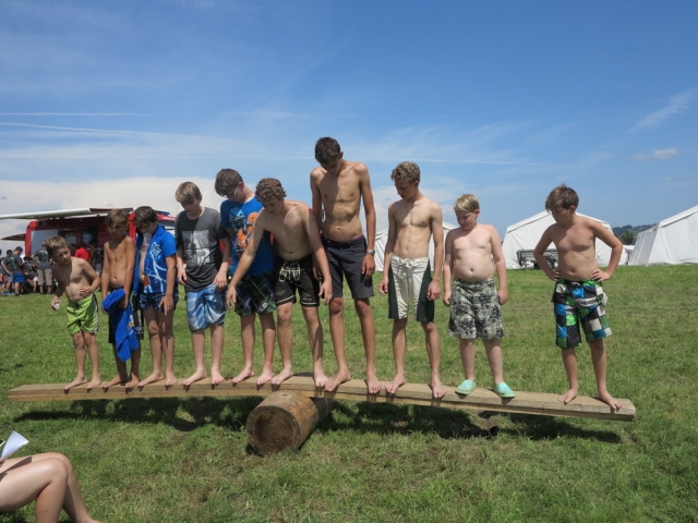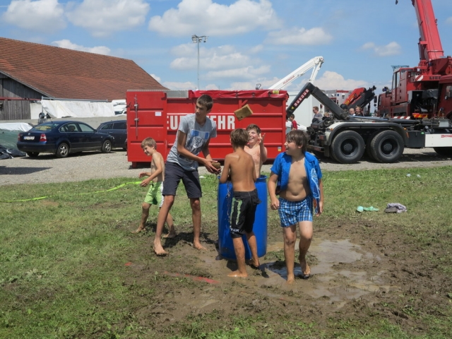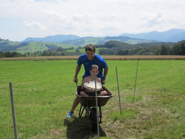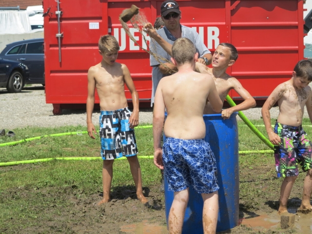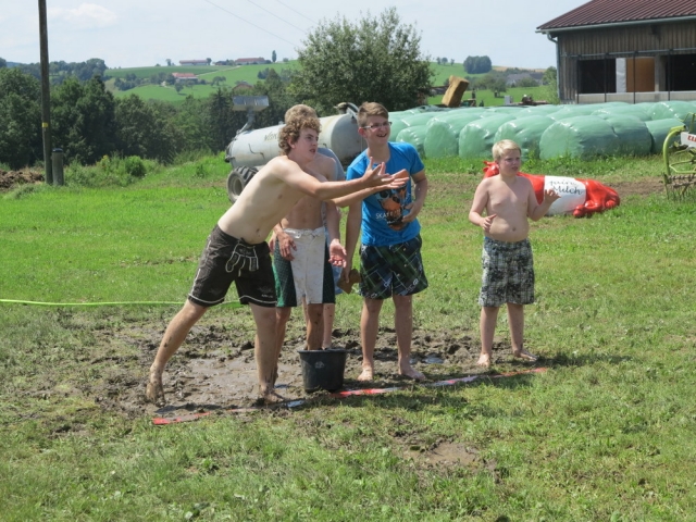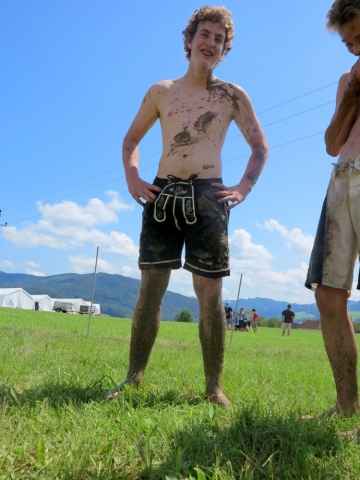 Nach einem nächtlichen Unwetter stand am Samstagvormittag erstmal die Reinigung der vom Matsch geküssten Kleidungsstücke und Geräte am Plan. Nachmittags wurde jedoch jeder Hinweis auf diese Arbeit im Rahmen des Sportteils der Lagerolympiade restlos vernichtet. Spätestens beim traditionellen Schwammwerfen wurde sichergestellt dass jeder bis in die Ohren voll mit Gatsch war.