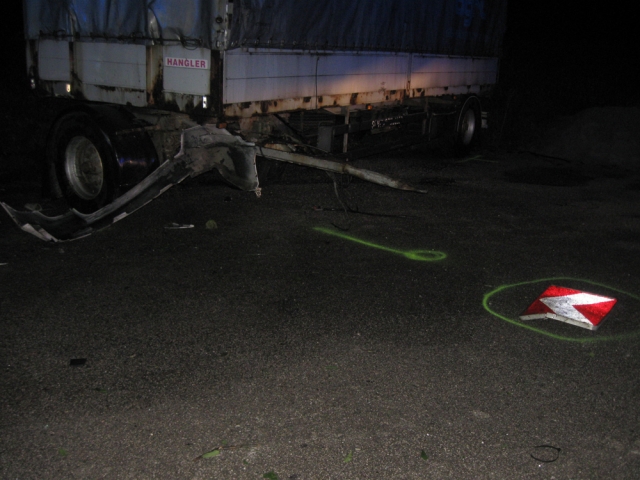 Auf der Steyrtalbundesstraße (B140) kam am Mittwochabend ein aus Richtung Grünburg kommender PKW auf Höhe des ehemaligen Lagerhaus Waldneukirchen von der Fahrbahn ab. Er überfuhr ein Verkehrsschild und prallte auf einen geparkten LKW-Anhänger. Das Fahrzeug wurde dann noch etwa zehn Meter zurückgeschleudert.