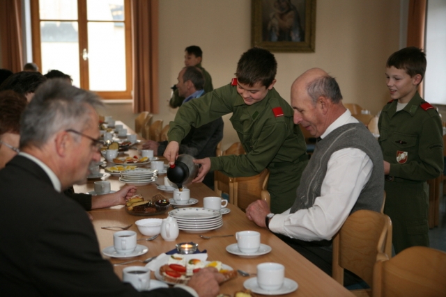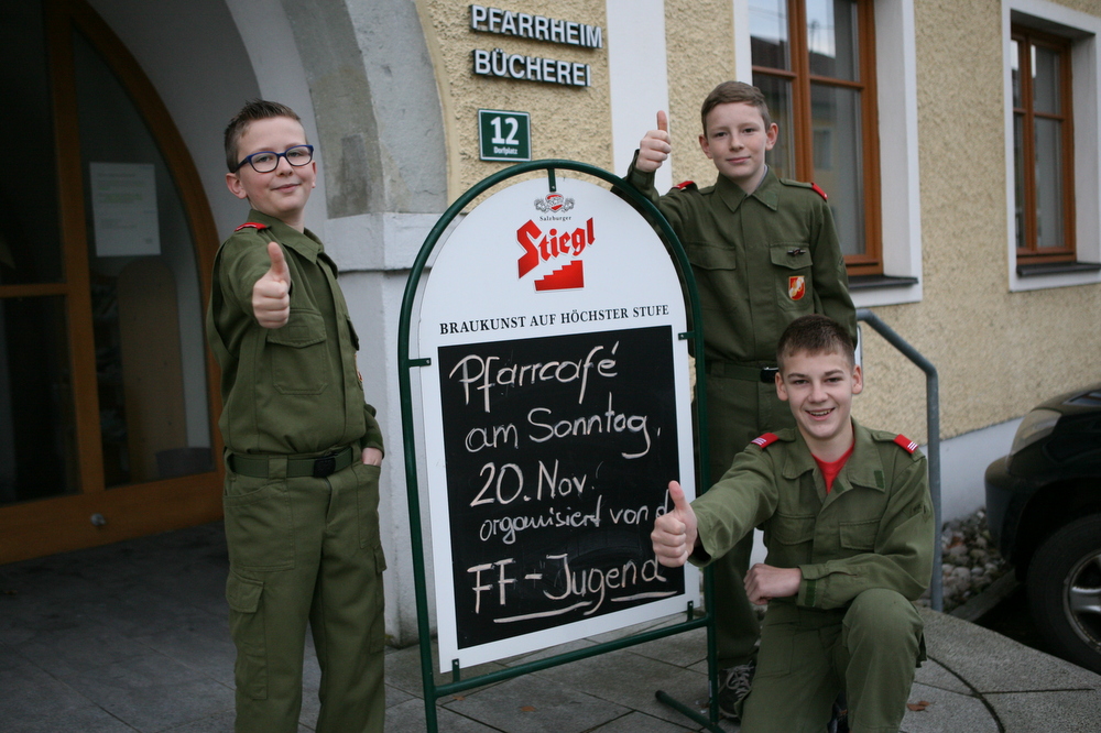 Die Jugendgruppen der drei Feuerwehren luden am Vormittag des 20. November zum Pfarrcafe ein. Die Besucher wurden mit Kaffee, Tee, bestrichenen Broten und reichlich Kuchen versorgt.