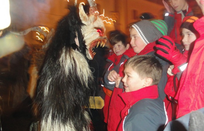 Das erste Treffen unserer Jugendgruppe im neuen Jahr, war gleich einmal ein aufregender und lustiger Ausflug zum Steinbacher Perchtenlauf. Gemeinsam fuhren wir am 5. Jänner 2014 nach Steinbach an der Steyr zum alljährlichen Perchtenlauf. Dort versuchten über 250 Perchten unserer Jugendgruppe das Fürchten zu lehren, das allerdings nicht immer gelang. Unsere Burschen blieben sichtlich cool, wie man den Fotos entnehmen kann. Mancher Percht war sogar für ein Handshake oder eine Umarmung zu haben. Andere wiederum überhäuften uns mit Erdnüssen und Süßigkeiten. Nach dem Perchtenlauf bewunderten wir vom Kirchenplatz aus das tolle Großfeuerwerk, welches dem einen oder anderen Jugendlichen ein atemberaubendes ‘‘WOW‘‘ entlockte. Eines war nach diesem Ausflug klar: Perchtenlauf 2015 wir kommen wieder!