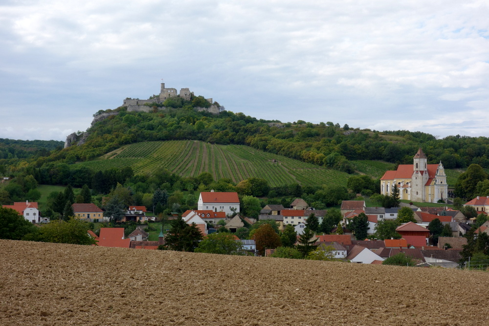 Beim nächsten Halt in Falkenstein schlenderten wir durch eine Kellergasse, bekamen die eine oder andere Geschichte dazu zu hören und genossen die prächtige Aussicht auf die Burgruine Falkenstein.