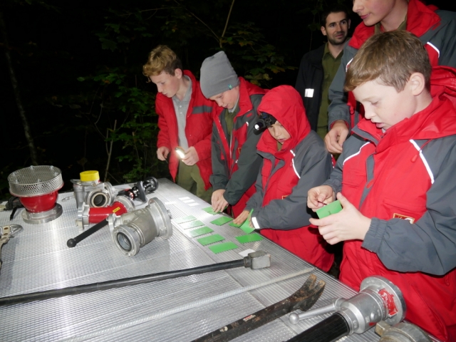 Diese Lichter wiesen uns den Weg zu verschiedenen Stationen, bei denen angehörige der Feuerwehr Spannende Stationen aufgebaut hatten.