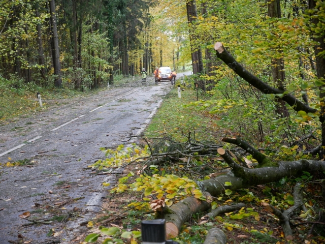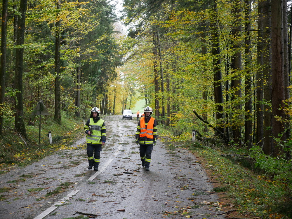 In unserem Pflichtbereich mussten wir eine Sperre der Adlwangerstraße ab Höhe Kläranlage bis zur nächsten Kreuzung in Richtung Adlwang einrichten. Im Waldstück dazwischen waren einige Bäume halb umgefallen und drohten, auf die Straße zu stürzen. Die Feuerwehr Steinersdorf entfernte auf der Mengersdorfstraße in der Nähe vom Schäfflwirt und auf der Steinersdorfstraße im Fuchsengraben umgestürzte Bäume. Die Hallerwaldstraße musste von der Feuerwehr Sankt Nikola gesperrt werden. Auch hier mussten umgestürzte Bäume von der Straße entfernt werden.