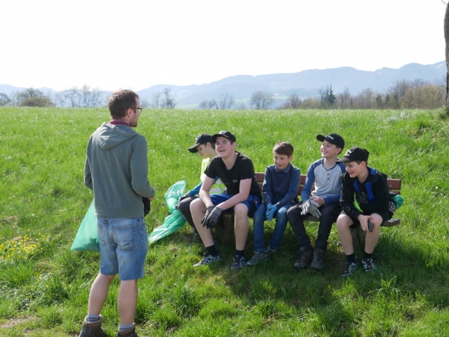 Mit Warnwesten, Handschuhen und Müllsäcken ausgerüstet schwärmten die Gruppen vom Bauhof in alle Richtungen aus, um entlang der Straßen den Müll aufzusammeln. Neben dem erzieherischen Effekt, machte die Aktion einigen der Jungs auch Spaß. Es entstand ein regelrechter Wettkampf um den schwersten Müllsack. Fleißige Helfer bekommen irgendwann auch Durst und Hunger und so ließen wir uns am Ende die verdiente Jause im Bauhof schmecken.