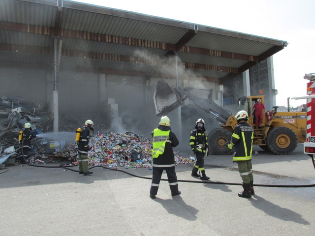 Beim Eintreffen des Rüstlöschfahrzeugs wurde der Müll mit Baggern am Vorplatz ausgebreitet und ein Atemschutztrupp begann mit der Brandbekämpfung. Das Glutnest war schnell abgelöscht und nach gut einer Stunde konnte die Einsatzbereitschaft wiederhergestellt werden.