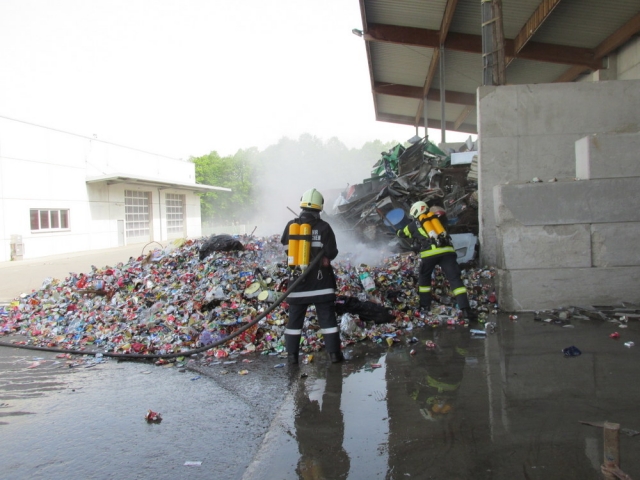 Heute Nachmittag alarmierte ein ortsansässiger Entsorgungsbetrieb die Feuerwehr. Mitarbeiter hatten Rauch bemerkt, der aus einem der Lagerplätze quoll.