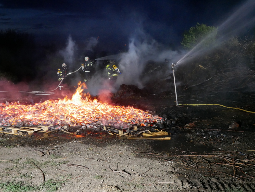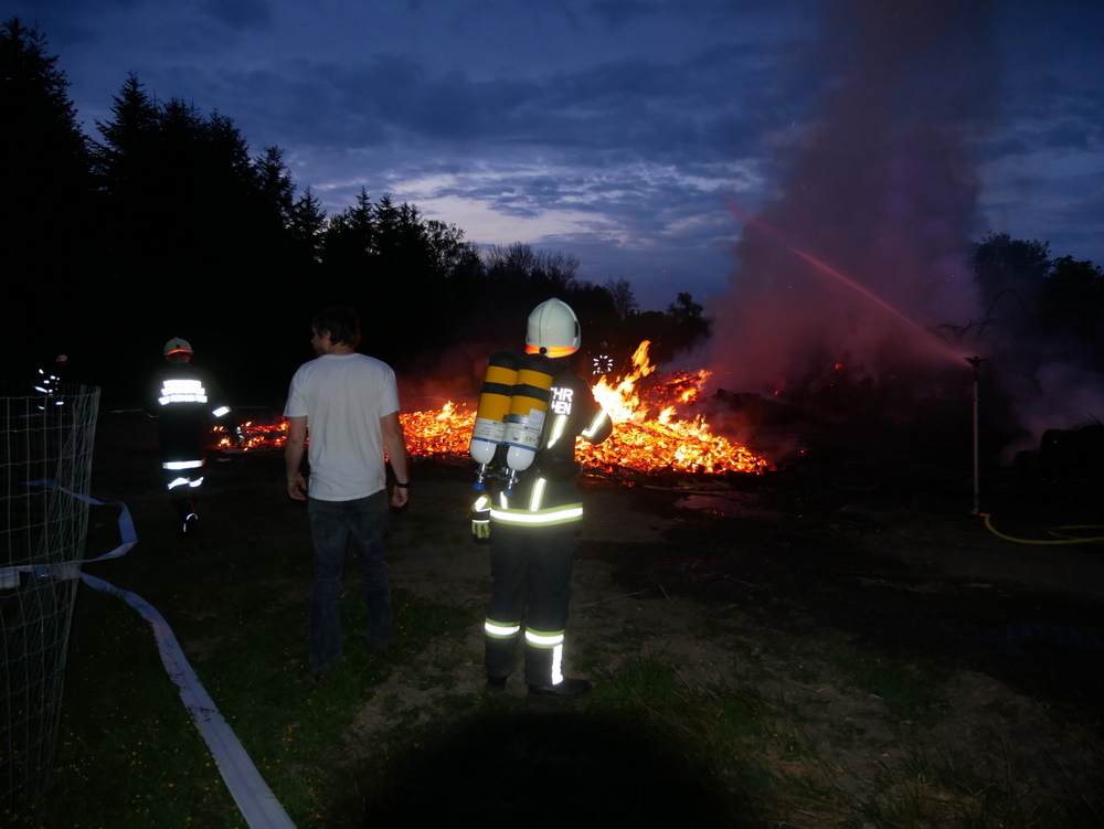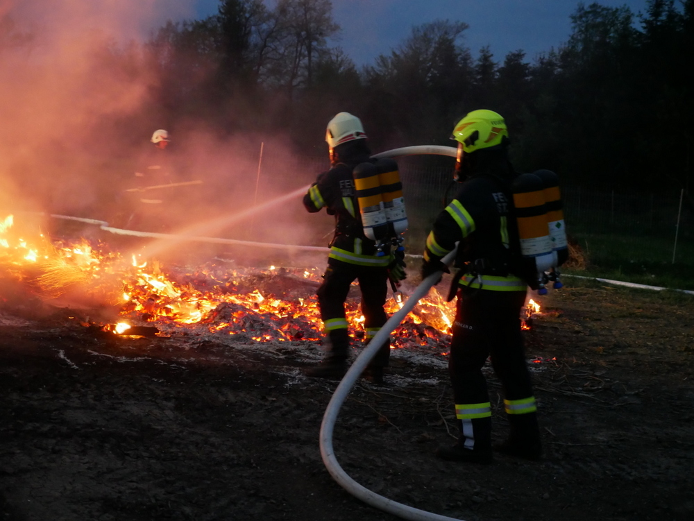 Am Abend des 28.4. geriet in Waldneukirchen ein Lagerfeuer außer Kontrolle. Mitarbeiter eines landwirtschaftlichen Betriebs hatten ein (ordnungsgemäß angemeldetes) Brauchtumsfeuer entzunden. Die Flammen griffen dabei auf einen Komposthaufen nebenan über. Ein vorbeifahrender Autolenker bemerkte das Feuer von der Straße aus, und drückte kurz nach 20:15 die Brandmeldetaste beim Feuerwehrhaus. Beim Eintreffen am Einsatzort stand der Holzhaufen noch in Flammen und im Komposthaufen glosten einige Glutnester. Der Besitzer versuchte noch, den Brand selbst zu löschen. Ein Atemschutztrupp breitete die Glutnester aus und löschte sie ab. Nach etwa einer Stunde beendeten wir den Einsatz und rückten wieder ins Feuerwehrhaus ein.