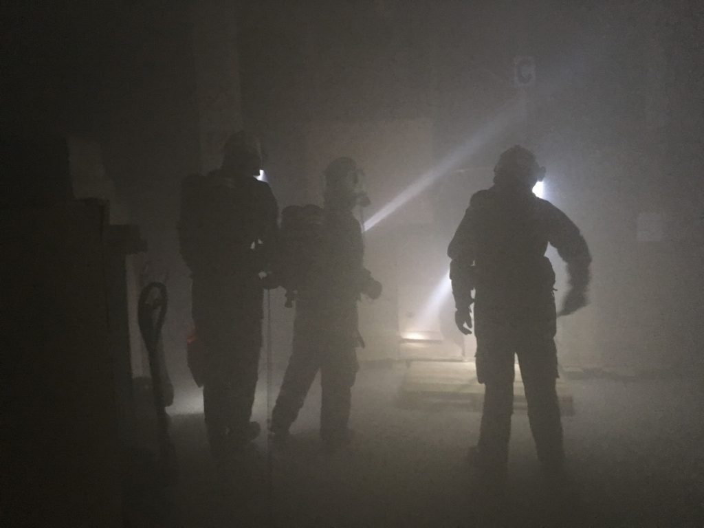 Übungsannahme war ein Brandausbruch in einem Teil des weitläufigen Gebäudekomplexes. Der dabei entstehende Rauch hatte sich auf weite Bereiche der Lagerhallen ausgebreitet. Es galt 6 im Gebäude vermisste Personen aus den verschiedene Gebäudeteilen zu befreien.
