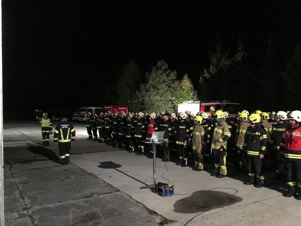 Im Anschluss an die Großübung erfolgte eine gemeinsame Nachbesprechung. Im Beisein von Bürgermeister Schneckenleitner und Coronet Austria Geschäftsführer Ausserhuber wurden die wesentlichen Eckpunkte dieser Übung erörtert.