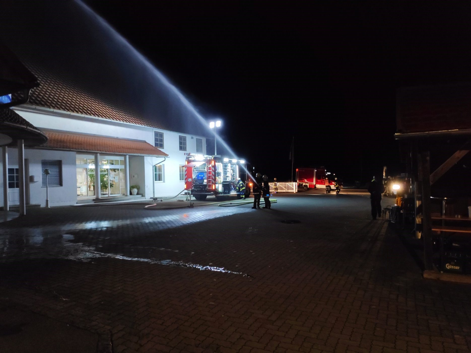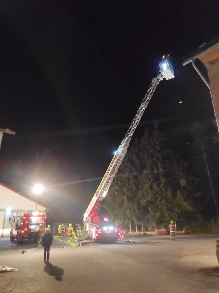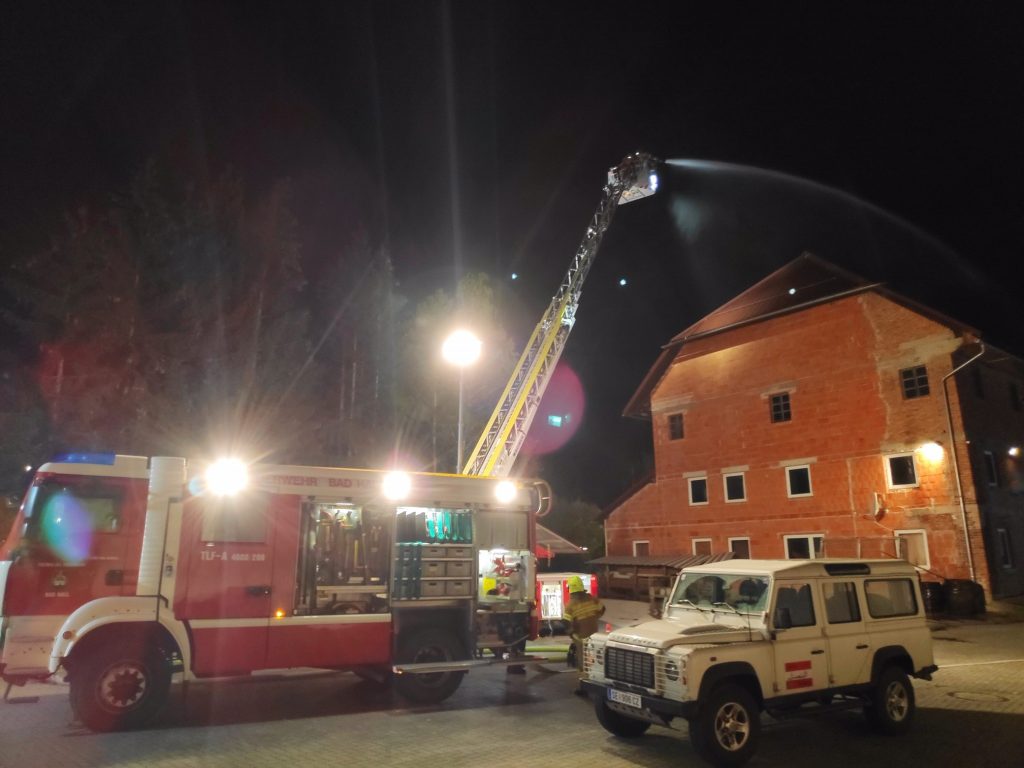 Die Drehleiter Bad Hall führte einen Löschangriff an der Ostseite des Hauptgebäudes durch und wurden dabei an der Südseite der Lagerhallen von der FF Adlwang unterstützt. Für die ausreichende Wasserversorgung mussten drei Relaisleitungen von den nächstgelegenen Wasserentnahmestellen verlegt werden. Dabei wurde auch aus einem nahegelegenen Löschteich Wasser entnommen.
