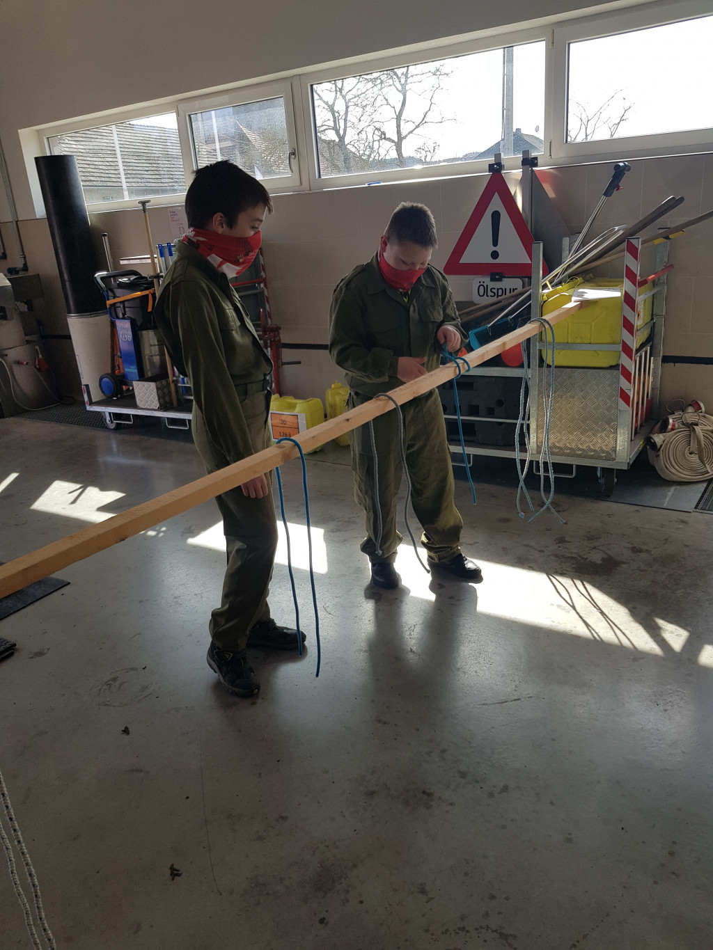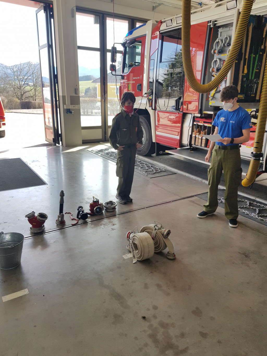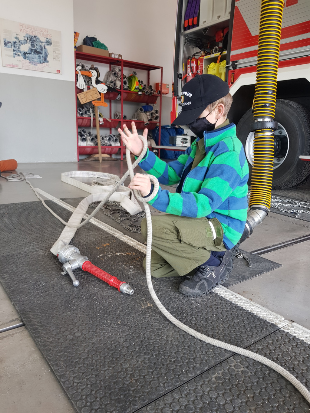 So lernten die Jungs beispielsweise die Fahrzeuge der eigenen Feuerwehr, Warn- und Alarmsysteme, Schläuche und Kupplungen und den Einsatzbereich der eigenen Feuerwehr näher kennen.