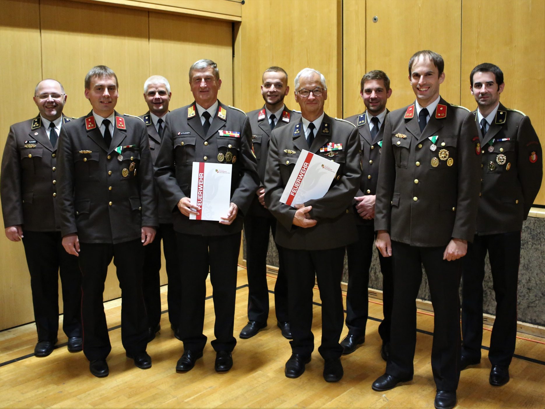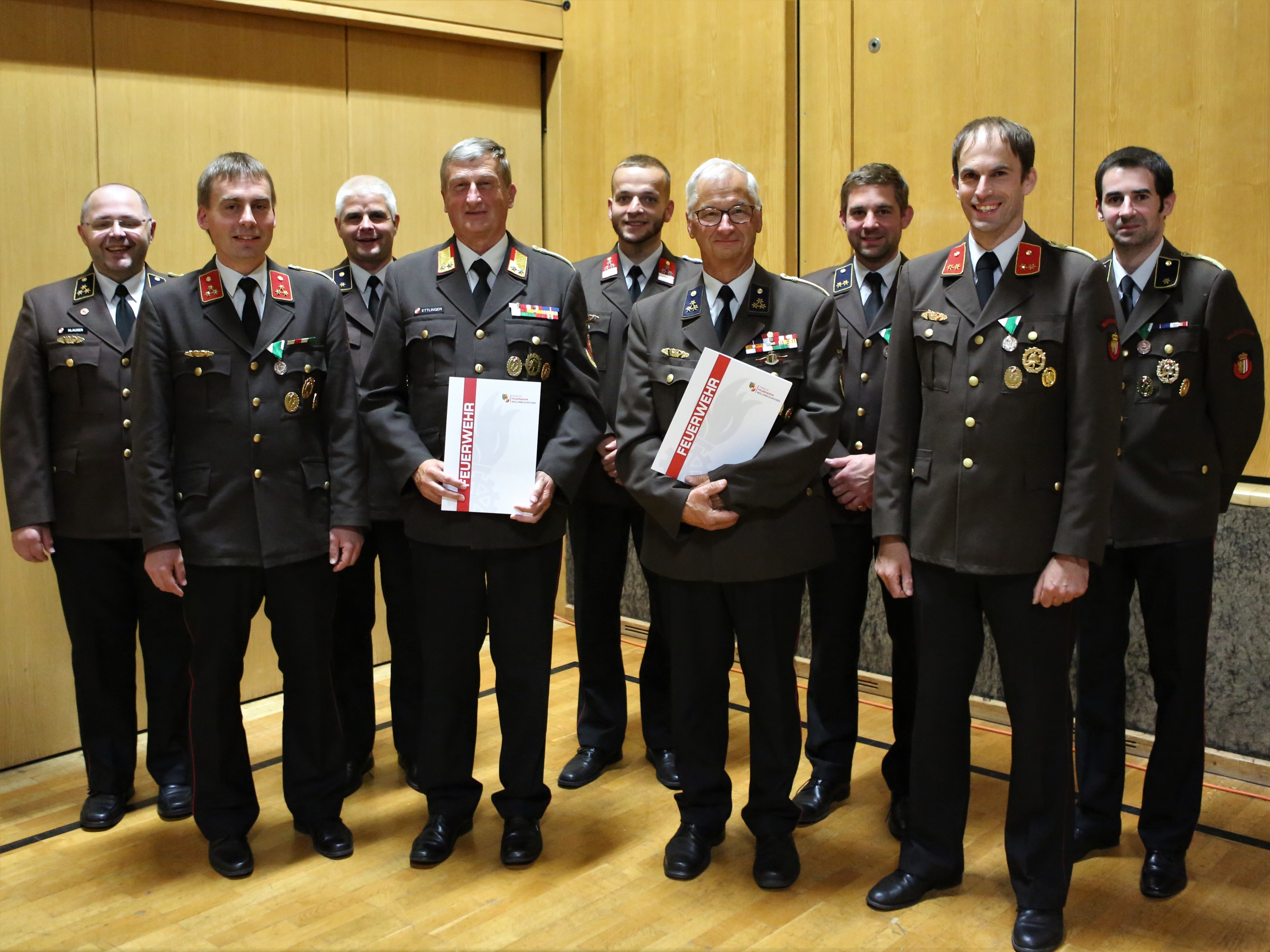 Begleitet von Standing Ovations der Mannschaft wurden die langjährigen Kommandanten Franz Lederhilger (krankheitsbedingt leider nicht anwesend) und Gerald Ettlinger zu Ehrenkommandanten der FF Waldneukirchen ernannt und dem langjährigen Schriftführer und Kdt-Stv. Franz Geyer der Dienstgrad „Ehren-Oberbrandinspektor“ seitens der FF Waldneukirchen verliehen.