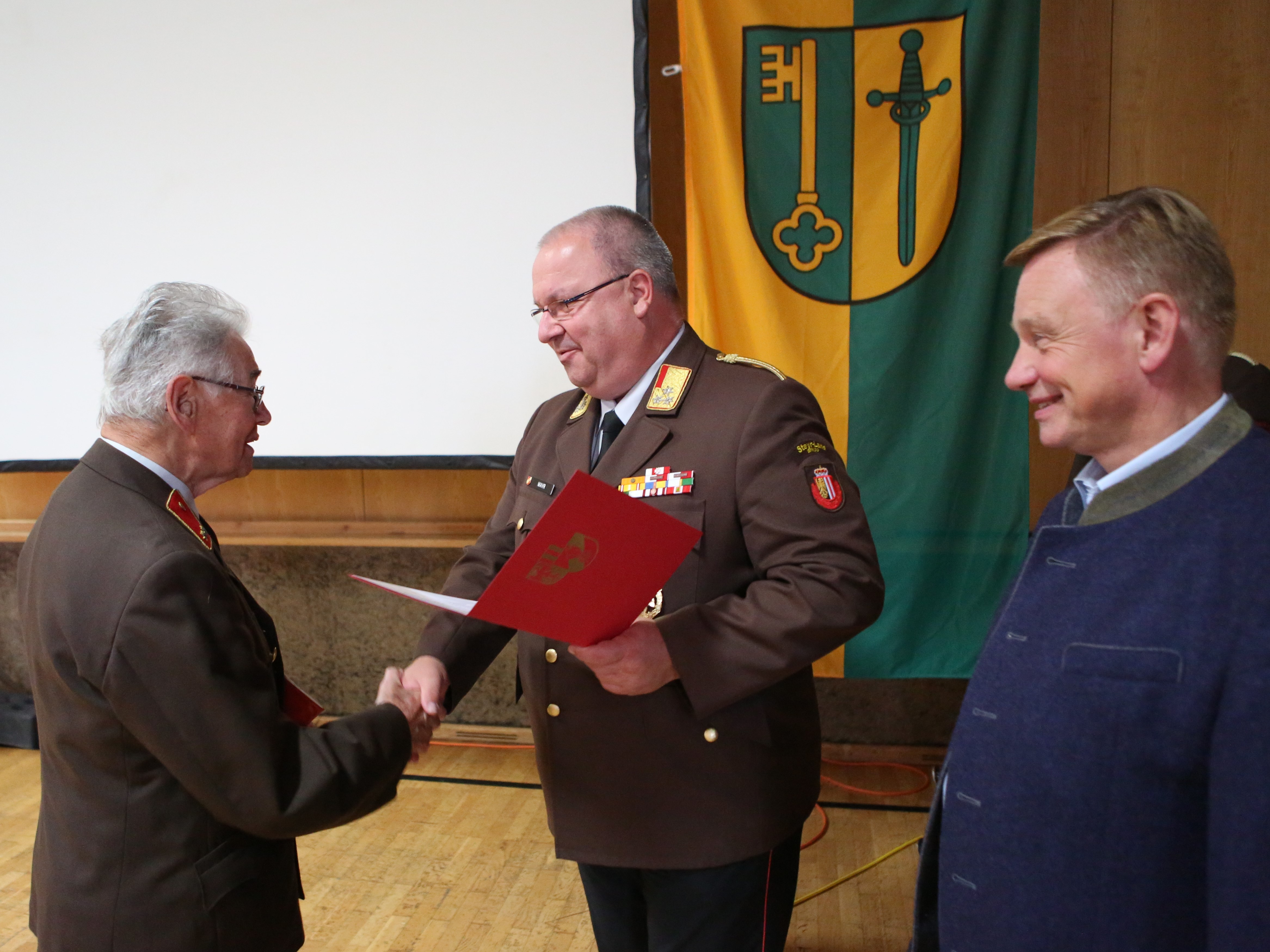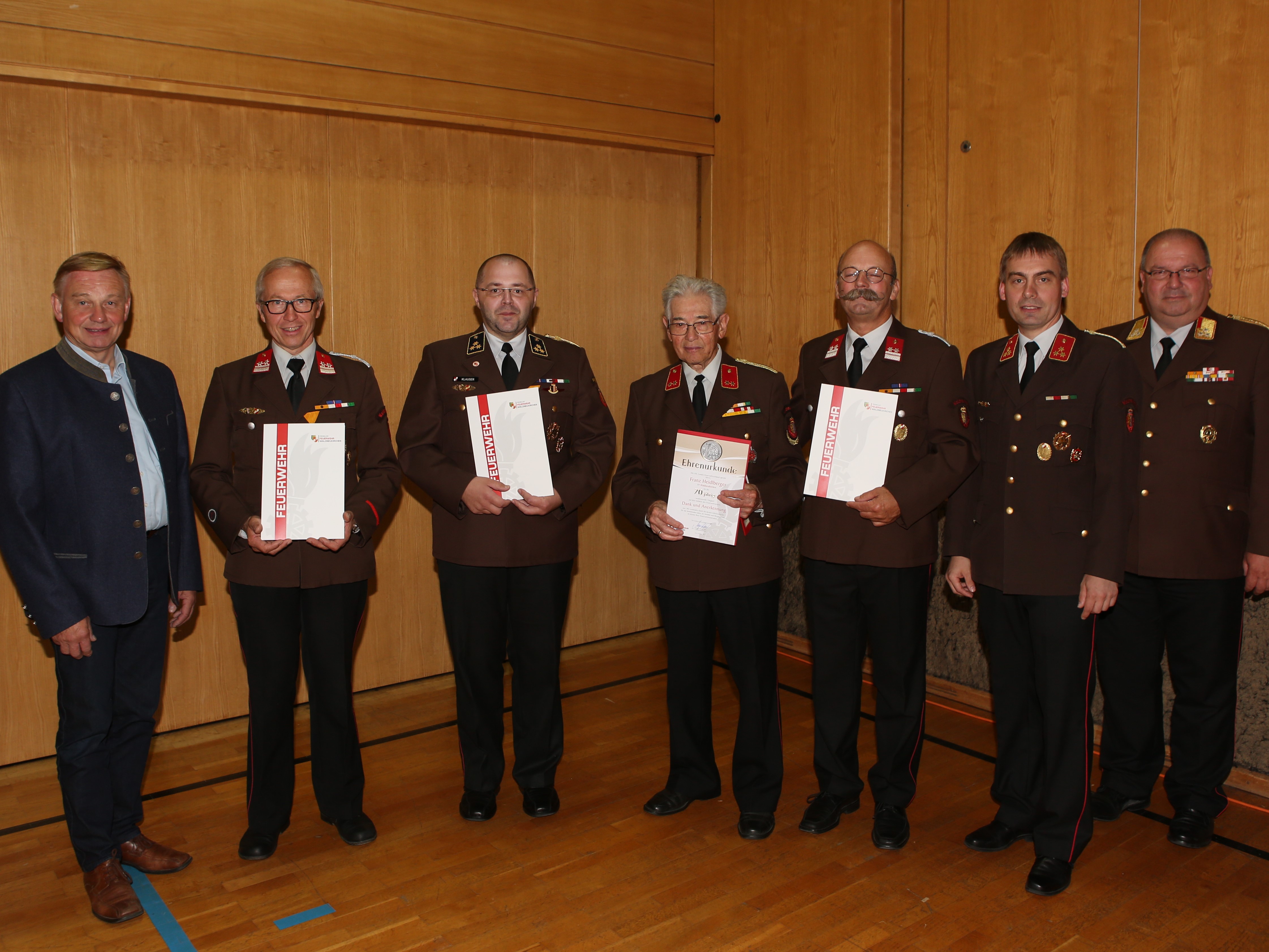 Kamerad Heidlberger Franz bekam eine Ehrenurkunde für seine 70-jährige (!!) Mitgliedschaft bei der Feuerwehr.