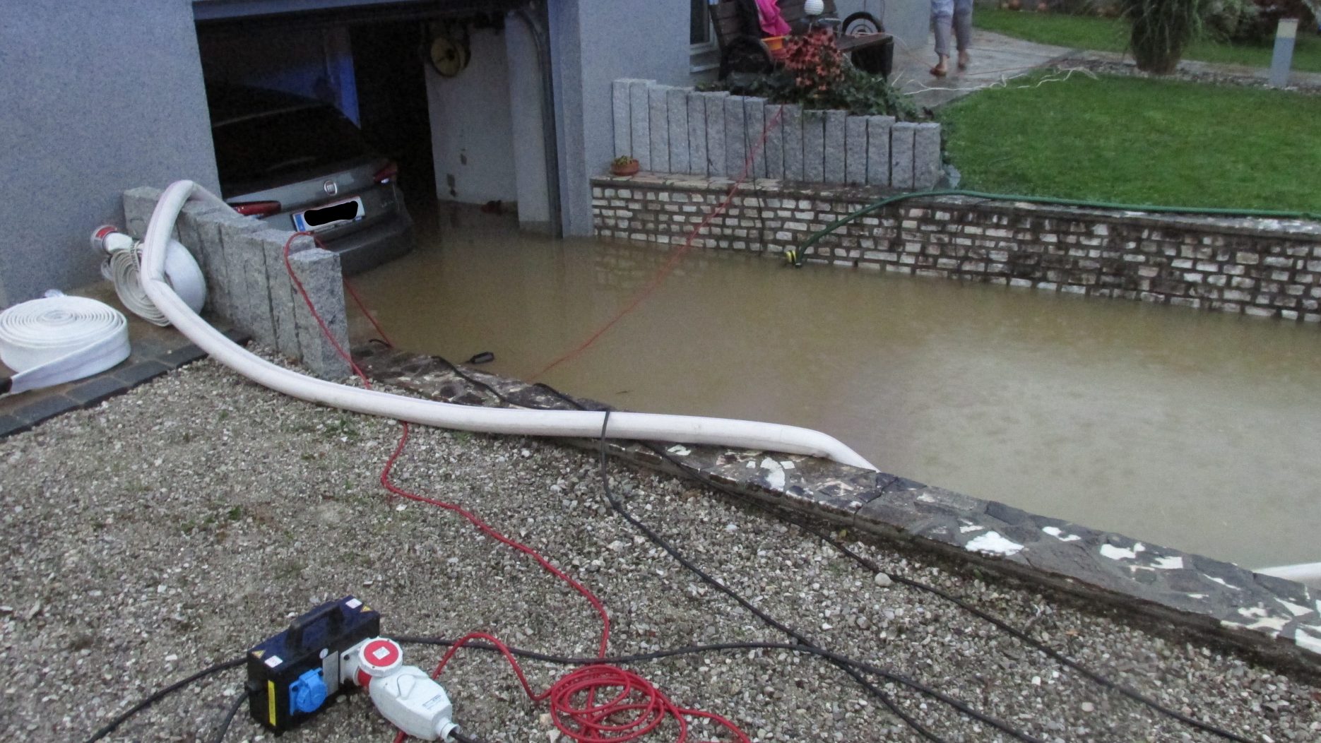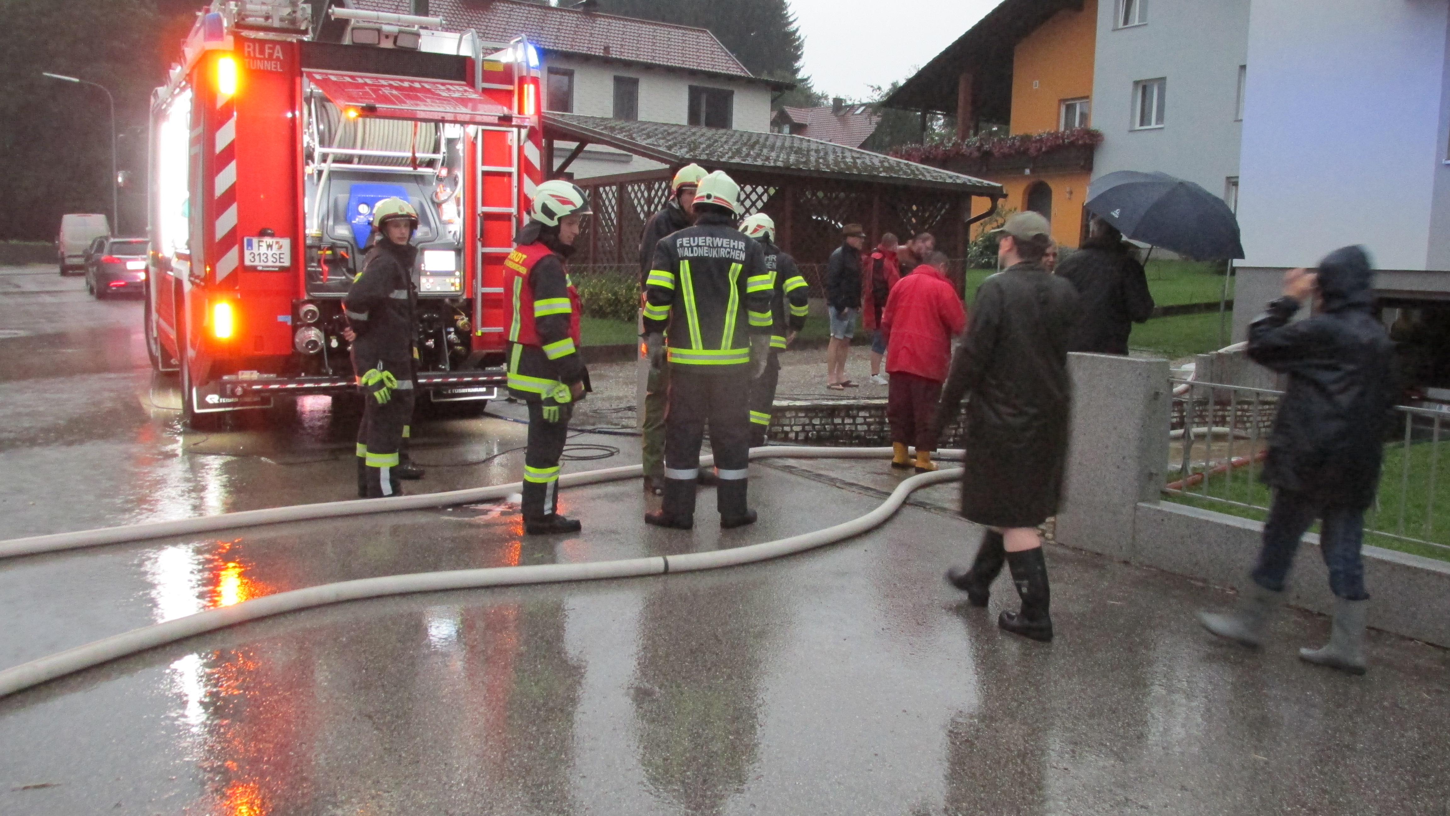 Weiters unterstützten wir die FF Bad Hall im Hotel Vitana, wo der Keller durch den Regen überflutet wurde.