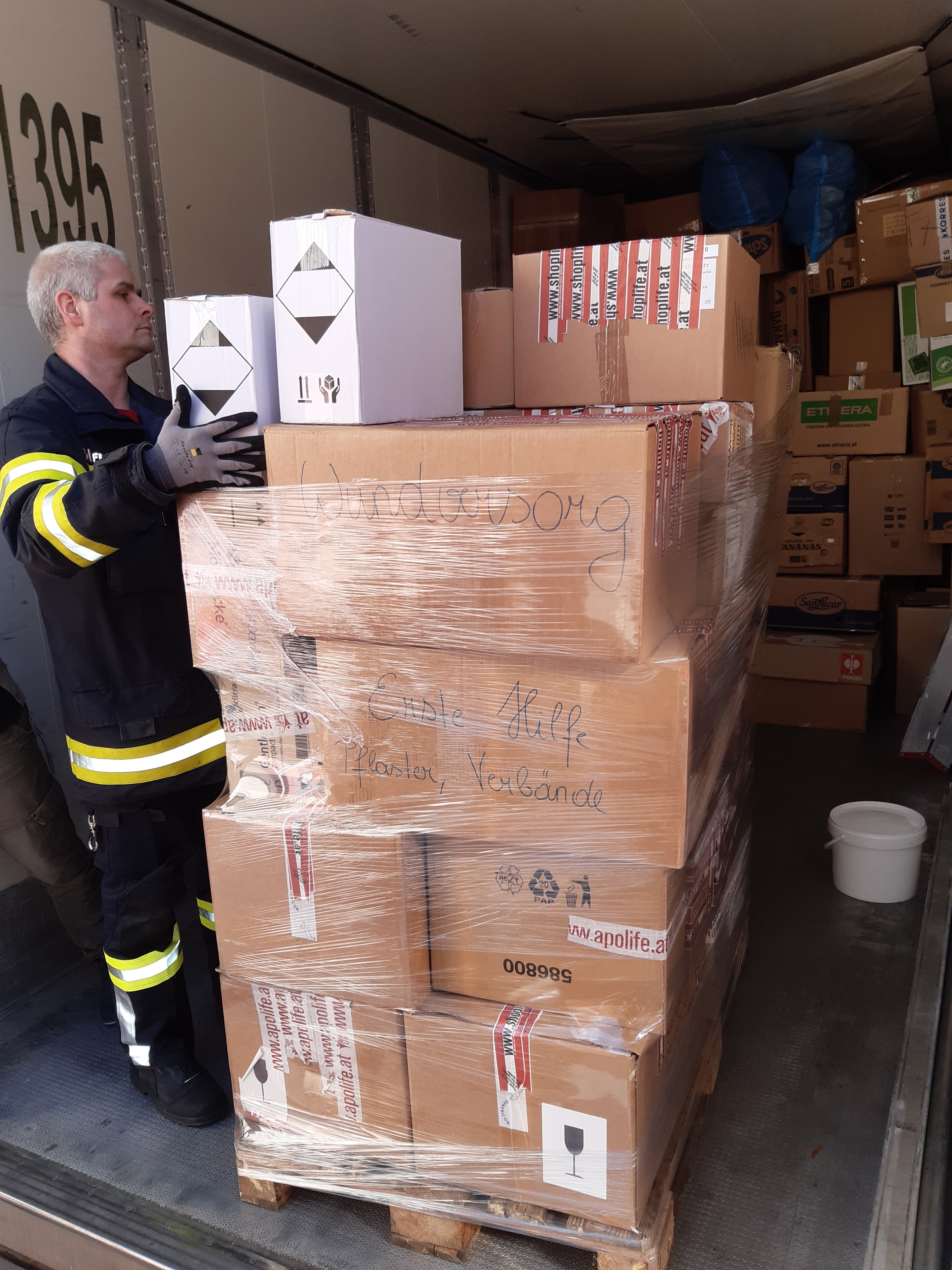 Unsere Kameraden der FF Grünburg, die 2 Hilfs-LKWs beim Beladen bei der Sammelstelle Gemeinde Grünburg unterstützten, bitteten uns um Mithilfe.