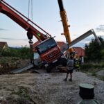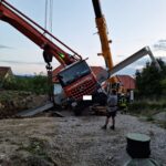 Die FF Waldneukirchen wurde am 17.08. gegen 8 Uhr abends zu einer nicht gerade alltäglichen Fahrzeugbergung gerufen. Ein Pumpenwagen war gekippt und war bei unserem Eintreffen bereits auf ein Nachbarhaus gestürzt. Wir begannen beim Eintreffen mit dem Absichern der Einsatzstelle, in Zusammenarbeit mit einem bereits vor Ort befindlichen Kranunternehmen wurde die weitere Vorgehensweise besprochen: