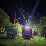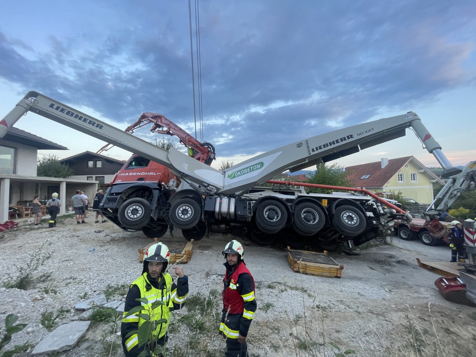 Aufgrund der verzwickten Lage wurden in Summe 2 Kräne sowie zusätzlich die Drehleiter Bad Hall zur Einsatzstelle gerufen, mit deren Hilfe konnte unter laufender Kontrolle der Lasten der Pumpenwagen Stück für Stück wieder in seine Position gebracht werden.