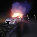 Am Einsatzort eingetroffen wurde ein Hybrid SUV in Vollbrand neben der Straße stehend vorgefunden.