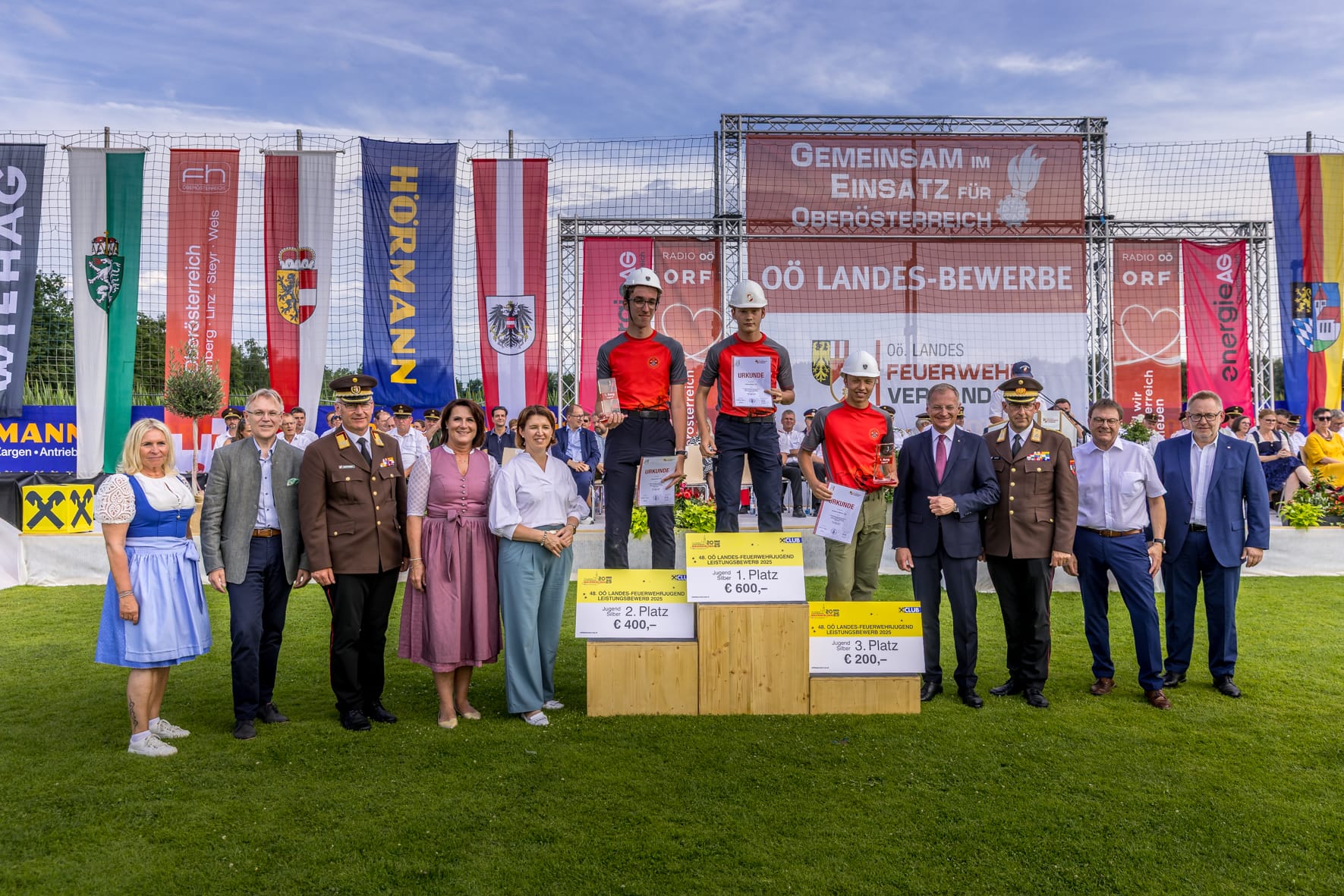 Ebenso zeigte unsere junge Aktivgruppe Waldneukirchen 1 eine hervorragende Leistung – mit einer fehlerfreien Zeit von 36,22 Sekunden auf der Hindernisbahn und der viertbesten Staffelzeit des gesamten Bewerbs holten die Burschen einen ausgezeichneten 2. Rang in Bronze.