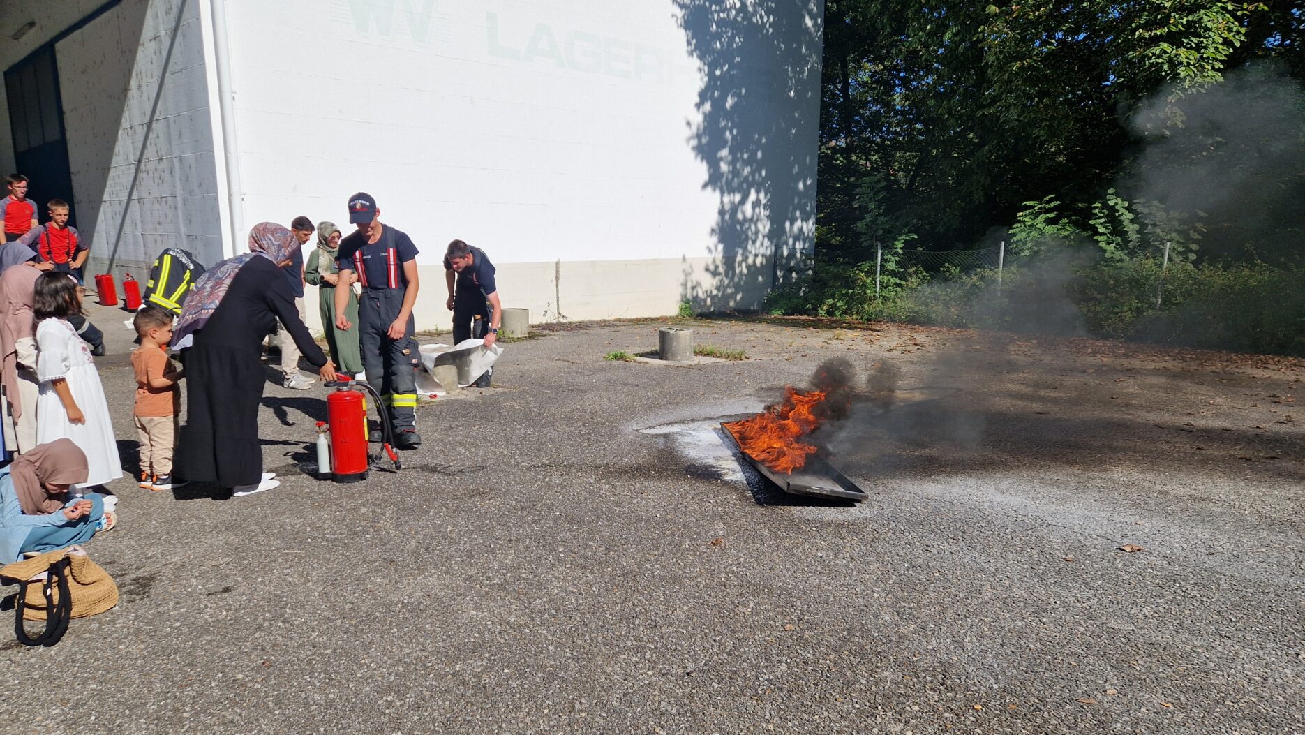 Auf Einladung vom Islamischen Kulturverein in Waldneukirchen veranstalteten wir, gemeinsam mit der FF St. Nikola und den Rotkreuz-Dienststellen Bad Hall und Grünburg in Zusammenarbeit mit dem Integrationsservice Traunviertel und Unterstützung der BH-Steyr Land, einen Infomationsnachmittag zum Thema „Vorstellung Einsatzorganisationen und Ehrenamt“. Die Besucher konnten einen Einblick die Fahrzeuge und Geräte der FF Waldneukirchen und St. Nikola nehmen bzw. bei Brandversuchen in Brandtassen das richtige Löschen üben. Für die Kinder hatten wir unsere Kübelspritzen und Spritzwände aufgebaut, während das Jugendrotkreuz mit Maskottchen ROKO Einblicke in seine Arbeit gewährte. Das Rote Kreuz präsentierte dem interessierten Publikum noch Erste-Hilfe-Maßnahmen inklusive Reanimation und Verbandstechniken.