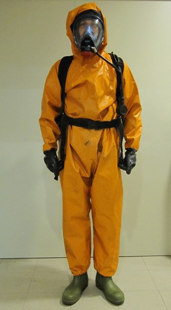Bei Schadstoffeinsätzen bei denen neben den giftigen Gasen und Dämpfen auch noch Flüssigkeiten ausgeflossen sind, wird zusätzlich zu den Atemschutzgeräten ein Säureschutzanzug der Schutzstufe II angelegt. Wir verfügen über drei Stück Säureschutzanzüge mit zugehörigen Säurefesten Stiefeln. Dieser schützt die Haut des Feuerwehrmannes vor giftigen und ätzenden Flüssigkeiten. Des Weiteren eignen sich die alten und ausgeschiedenen Säureschutzanzüge auch sehr gut bei Wespen- und Hornisseneinsätzen.